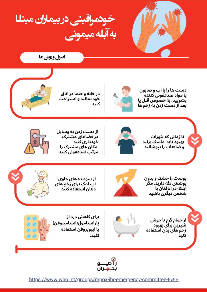 بنا بر اعلام وضعیت هشدار بهداشتی توسط سازمان جهانی بهداشت درباره آبله میمونی باید برای پیشگیری، درمان، خودمراقبتی و عدم ابتلا به آن آماده بود.